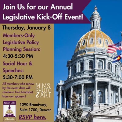 Please join us for our annual Legislative Kickoff on January 8th! We are honored to have as speakers Majority Leader Monica Duran, and Senator Julie Gonzales, both of whom are champions for gender equity.